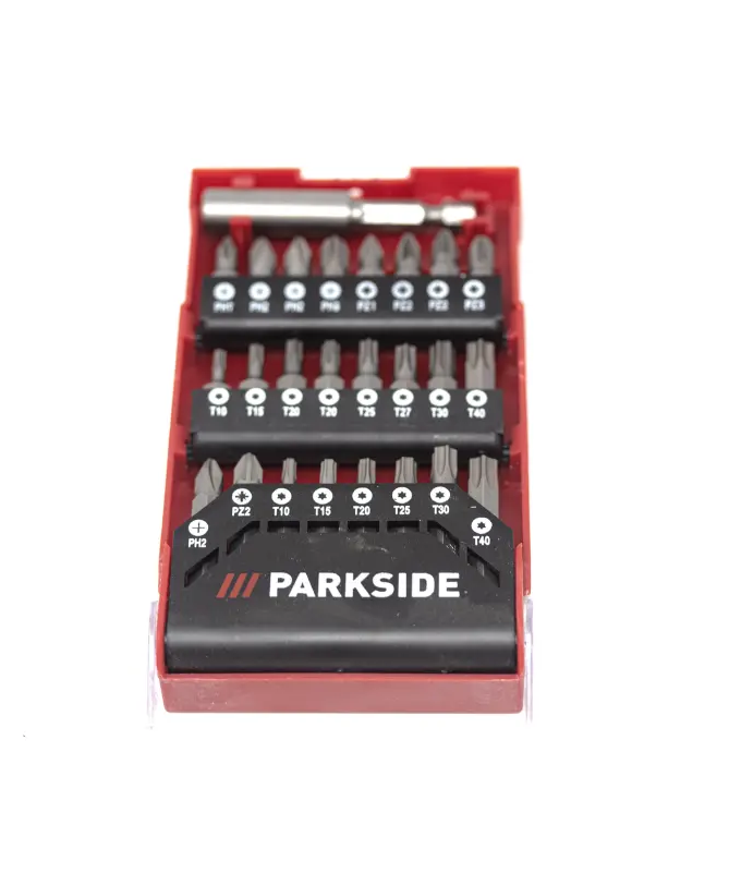 Parkside 25 gabalu uzgaļu komplekts – kvalitatīvs, daudzpusīgs un ērti iepakots komplekts ar PH, PZ, SL, Torx un HEX uzgaļiem dažādiem mājas un profesionāliem darbiem.