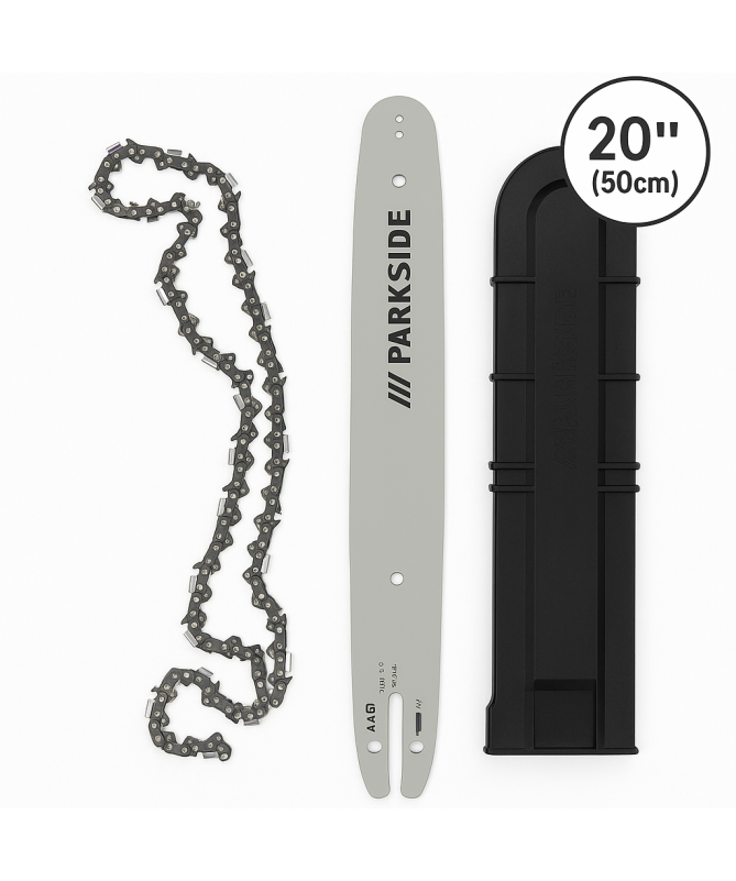 Šis ķēdes un vadotnes komplekts ir paredzēts Parkside PBKS 53 B3 benzīna motorzāģim, kā arī citiem saderīgiem modeļiem. Komplektā ietilpst 50 cm vadotne, ķēde ar 0.325" soli un 1.5 mm ķēdes platumu, kā arī aizsargapvalks drošai glabāšanai.
